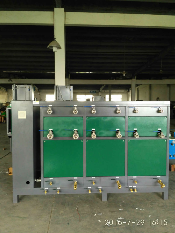 1)三機一體模溫機獨立控制溫度,適合前后模不同的溫度需求,也可同時精準控制不同溫度的四臺主機,操作適用方便。